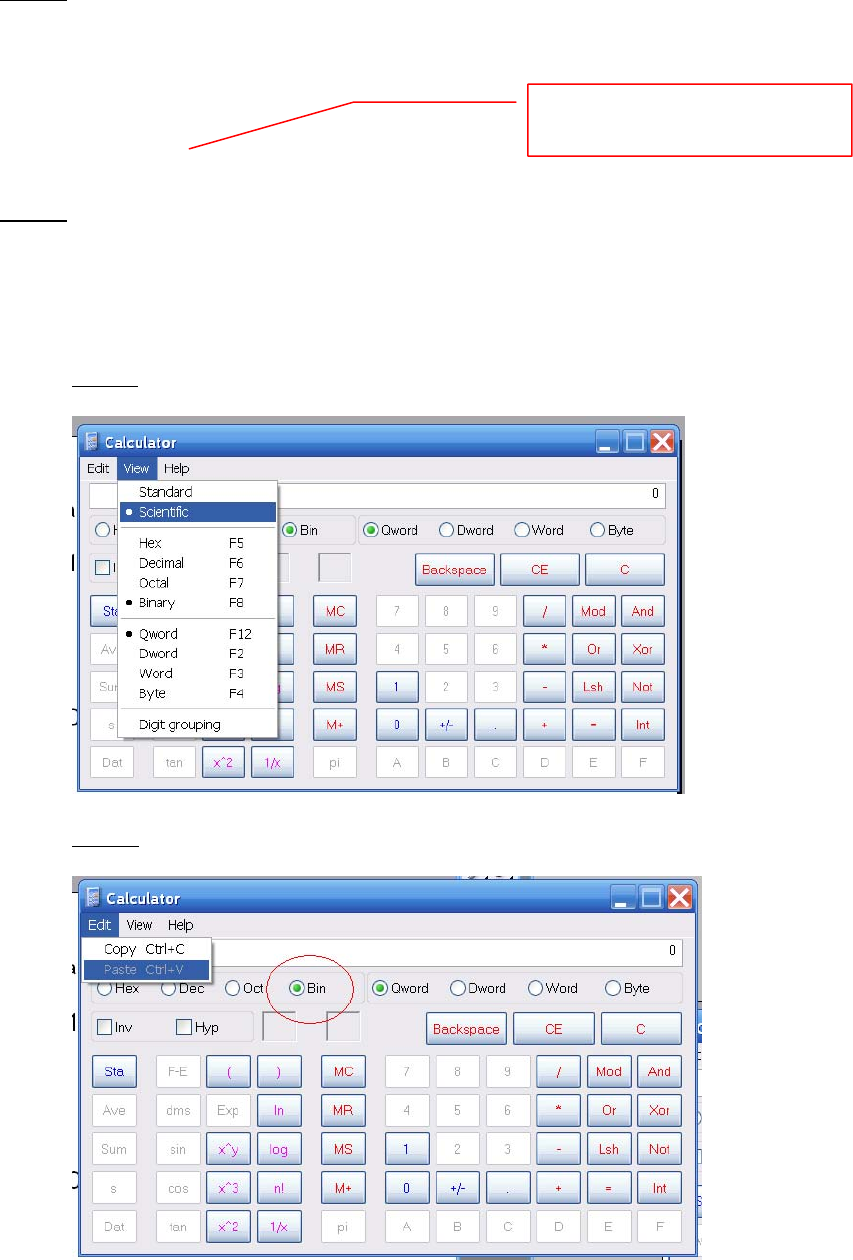 Step b: Paste the template to the calculator in Binary mode