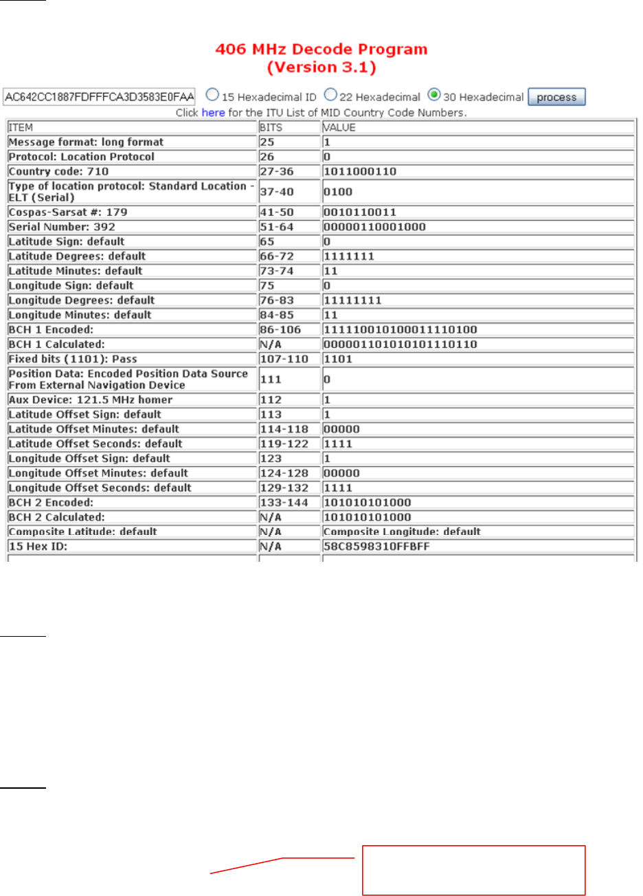 Input the 30-digit hex code into the 406 MHz Decode Program provided. See below: