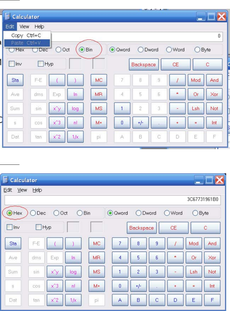 Step b: Paste the template to the calculator in Binary mode