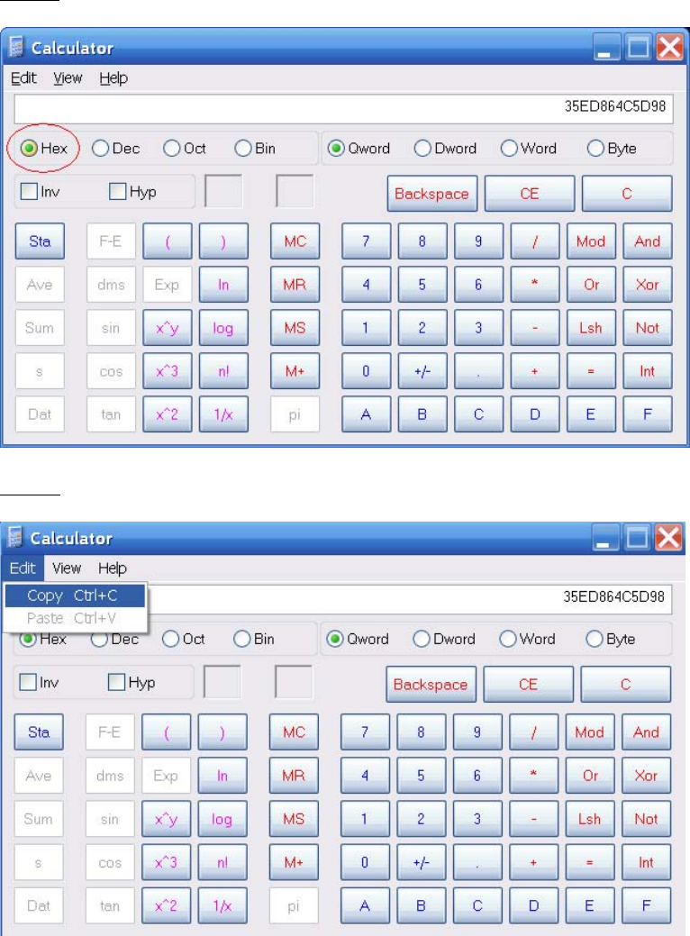 Click on “Hex” to convert